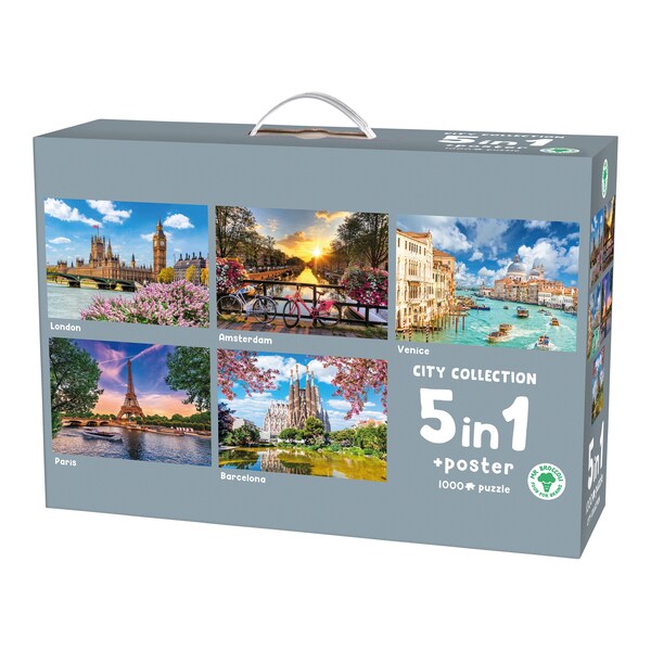 Mr. BroccoliPuzzelset “Stedentrip”, 5 puzzels: elk 1.000 stukjes