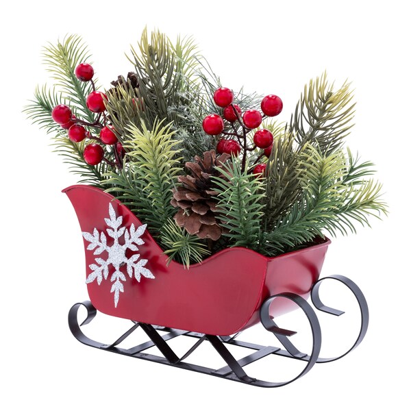 Gevuld met groene dennentakjes, dennenappels en felrode bessen brengt deze nostalgische slede elk jaar weer de mooiste decoratie uit het kerstbos in huis.