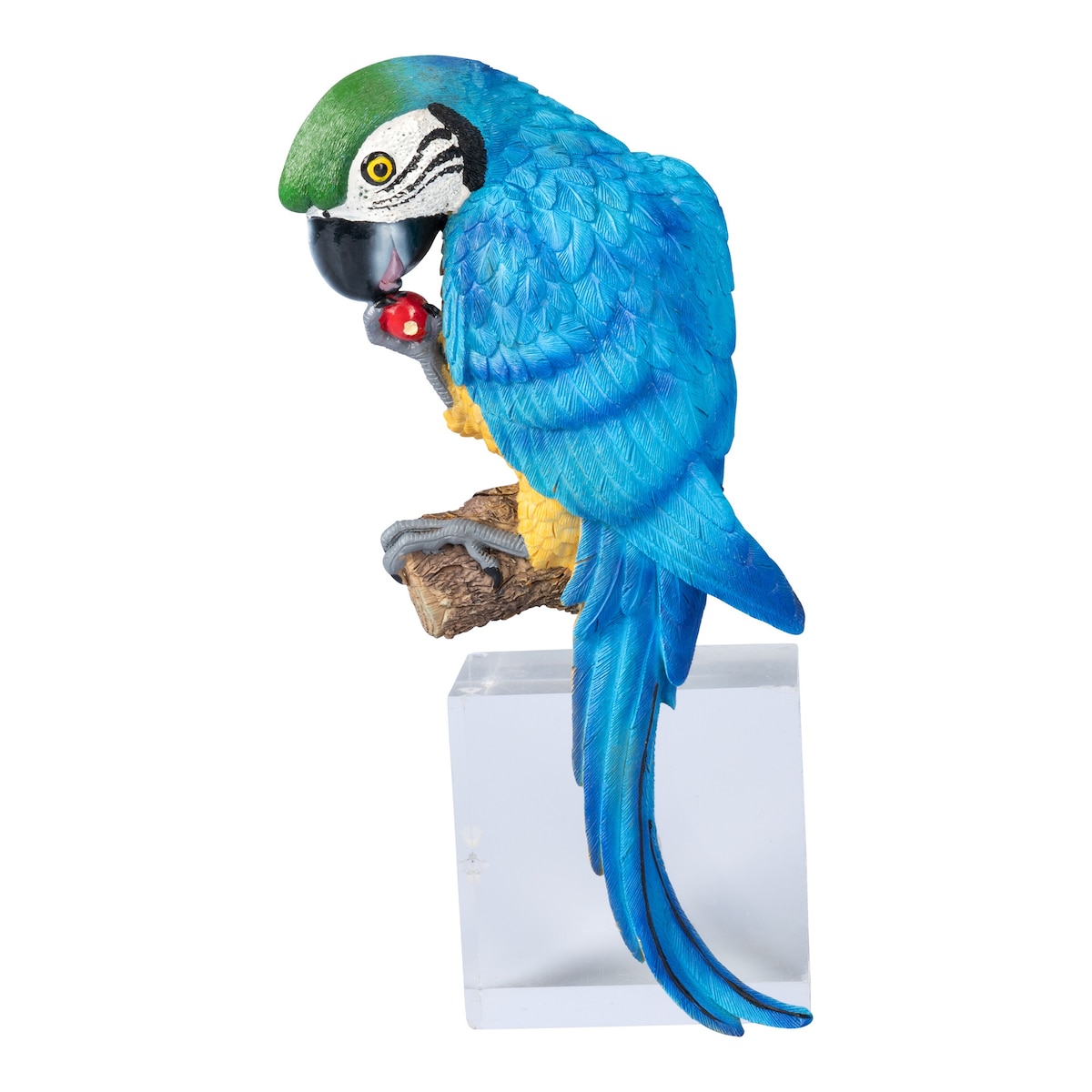 Met zijn felblauwe verenkleed brengt deze papegaai wat tropische flair in uw interieur. In de woonkamer, de hal of op de veranda: een kleurrijke blikvanger is hij in elke ruimte gegarandeerd. Dankzij het ophangoogje aan de achterkant is hij erg makkelijk op te hangen.