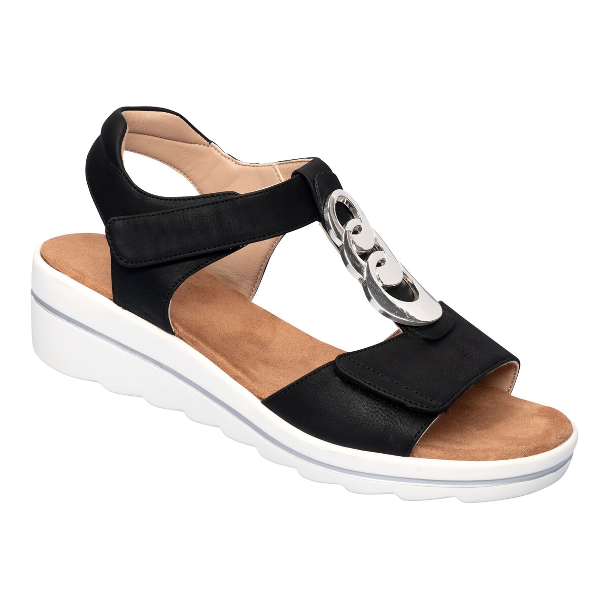 Onze elegante sandaal combineert stijl en comfort in een dans van lichtheid. Het lederlook, veggie leer en de twee klittenbandsluitingen zorgen er niet alleen voor dat je snel en gemakkelijk in en uit kunt stappen, maar ook dat je ze perfect aan je voet kunt aanpassen. De schoenen kunnen helemaal open om je een gevoel van vrijheid te geven. De mooie metalen versiering boven de wreef voegt een extra vleugje elegantie toe aan het ontwerp. Met een zachtere microvezel binnenzool en een comfortabele sleehak is elke stap een plezier. De zacht aanvoelende zool en standaard wijdte zorgen ervoor dat je er niet alleen goed uitziet, maar je ook de hele dag comfortabel voelt. Ervaar de magie van mode die niet alleen mooi is, maar je ook een beetje vrijheid geeft bij elke stap.